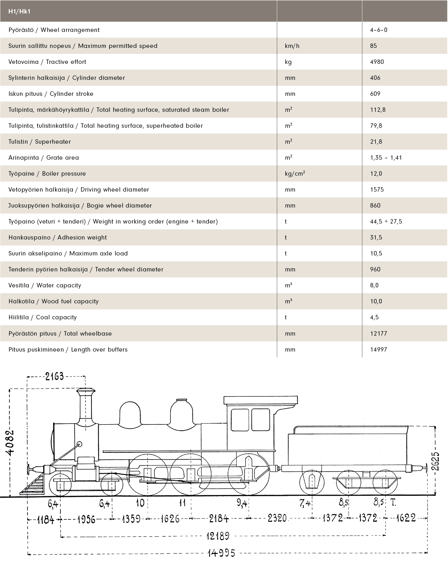 The Kylälä blast pipe was experimentally fitted to no. 239 in 1918. In the 1920s the class was superheated and the slide valves were replaced by piston valves by adding valve chests above the cylinders. During trials, speeds in excess of 100km/h were attained but the maximum permitted speed was fixed at 80km/h, the maximum on the SVR/VR until 1934 when it was raised to 95km/h (85km/h for classes H1–H7). Aga gas lighting was installed in the 1920s.